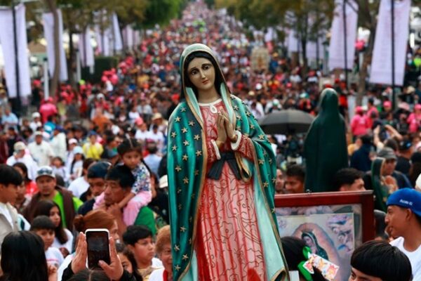 Agencia Reforma Ciudad de México 11 diciembre 2025.- Gerardo carga la foto de Margarita, su madre fallecida hace dos años, avanza de rodillas por Calzada Guadalupe. De su cuello cuelgan dos nopales mientras sostiene la imagen de la Virgen, a quien le prometió visitarla para que lo cuide a él, a su madre y a…