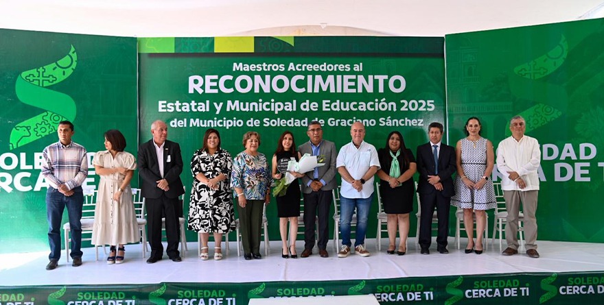 San Luis Potosí, 14 mayo 2025.- Con un mensaje de apoyo total y reconocimiento por una labor ardua en los salones de clase, el Día del Maestro se vivió en un ambiente agradable y cercano en Soledad de Graciano Sánchez, con un festejo a cargo del Alcalde, Juan Manuel Navarro Muñiz, quien entregó galardones a 11 docentes por su dedicada trayectoria escolar en favor de sus comunidades, además de externarles que las y los docentes son guías del futuro e impulsores de un desarrollo social íntegro en el municipio.