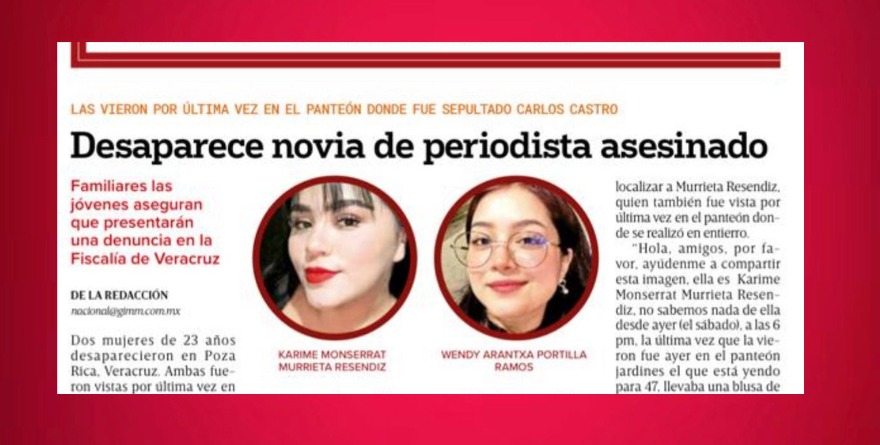 Karime se encontraba con la novia del colega fallecido, quien también está desaparecida.