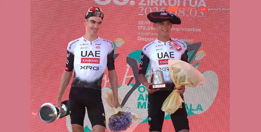 Ciudad de México, 3 agosto 2025.- Continua el buen momento del ciclista mexicano Isaac del Toro, mantiene un ritmo impresionante en la ruta, intentando siempre estar cerca del pelotón, y faltando 15 kilómetros inicio su ataque al acelerar en busca de la meta rebasó rivales de uno en uno con un cierre brillante cierre de carrera en España, apoyado por su compañero del UAE Team Emirates, Juan Ayuso.