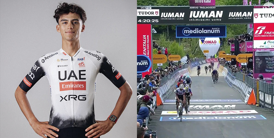 Ciudad de México, 16 mayo 2025.- El joven de 21 años, Isaac del Toro, cruzó la meta detrás de su compañero en UAE Team Emirates, el español Juan Ayuso, para subir al tercer puesto de la famosa vuelta ciclista.