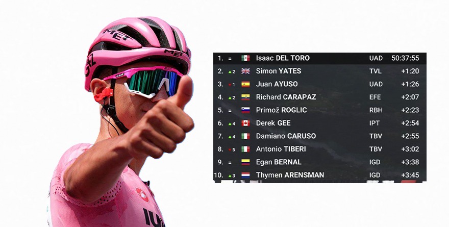 Ciudad de México 24 mayo 2025 .-El mexicano Isaac del Toro mantiene la ‘maglia rosa’ y el liderato en el Giro de Italia al finalizar la Etapa 14, que fue ganada por Kasper Asgreen.