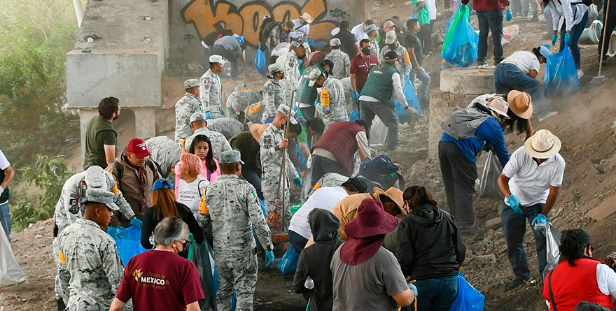 La jornada de recolección de desechos se realizó en las inmediaciones de El Gran Canal, en la colonia Tolotzin, a lo largo de 1.5 kilómetros de caminos de tierra, cascajo, llantas, madera y basura acumulada.
