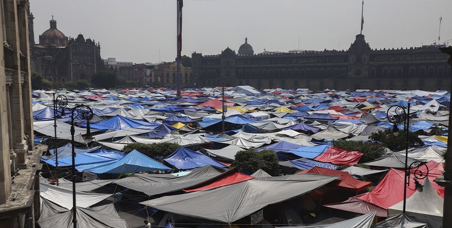 Ciudad de México 25 mayo 2025.- El Gobierno federal ya se quitó la careta de progresista, popular y democrático, aseguró la Coordinadora Nacional de Trabajadores de la Educación (CNTE), quien mantiene un plantón en el Zócalo desde el pasado 15 de mayo.