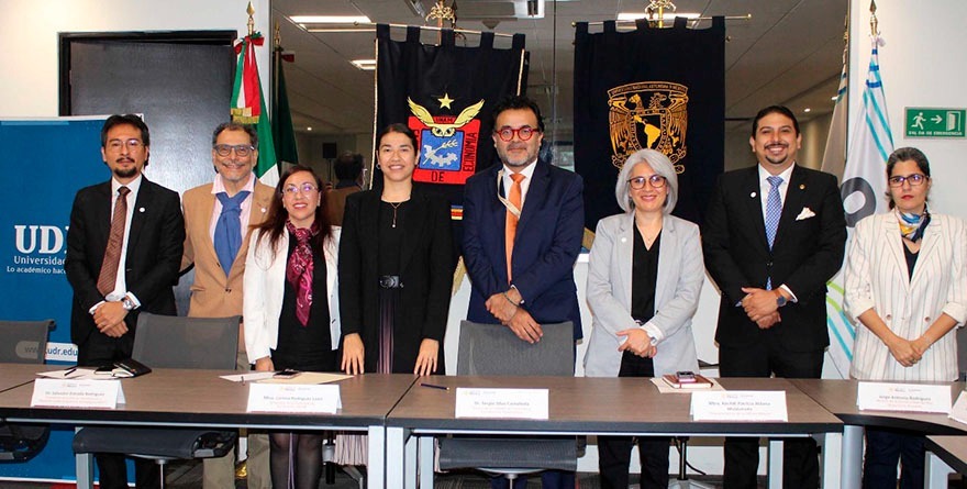 En el acto estuvieron: Edgar Arteaga Figueroa, integrante del Centro de Economía y Prospectiva de la Ciencia y la Tecnología de la FE; Jorge Antonio Rodríguez, rector de la Universidad del Río, Ecuador; y Salvador Estrada Rodríguez, académico de la Universidad de Guanajuato; entre otras personalidades.