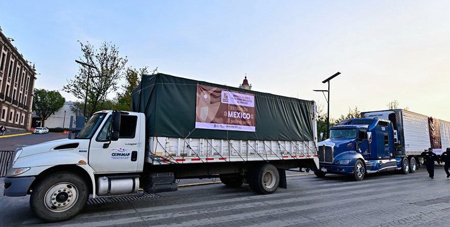 El envío de víveres, comandado por Protección Civil del Estado de México, fue recaudado en los Centros de Acopio de Toluca, Valle de Chalco y Naucalpan, y se dirige al Aeropuerto Nacional Ingeniero Juan Guillermo Villasana, de Pachuca, Hidalgo, donde la Guardia Nacional y la Secretaría de la Defensa Nacional (Sedena) coordinan el acopio y la distribución de los insumos.