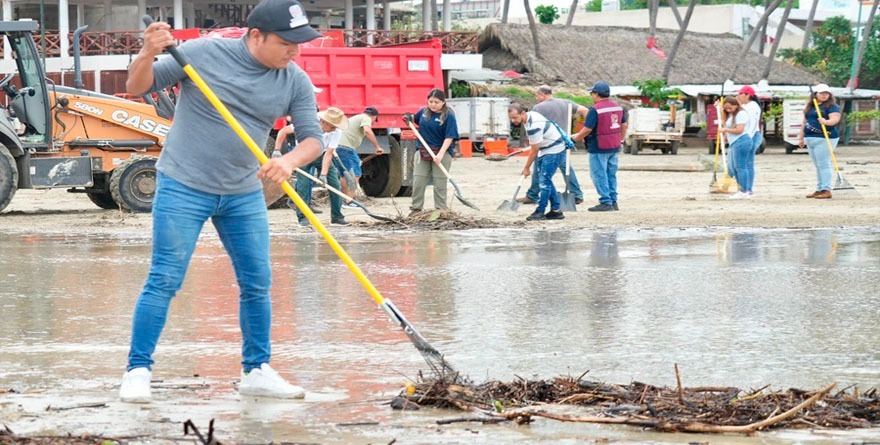 En esta jornada convocada por el Consejo Estatal de Protección Civil, también se sumaron pescadores y ciudadanía en general, la cual permitirá restablecer la normalidad y atender los daños en ese destino.