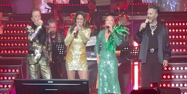 Lucero reafirmó que sigue siendo «La Novia de América» con «Ya No» y en cuanto Mijares emergió con su voz en «Bella» dejó a varias mujeres sin aliento y los cuatro cantantes les cedieron el micrófono al público para que corearan la canción.