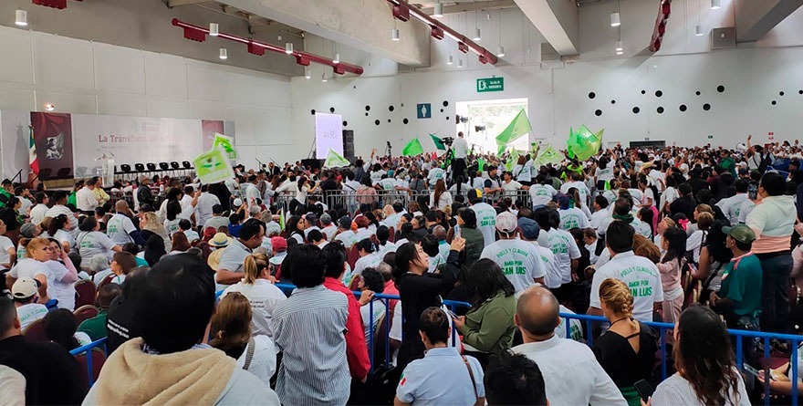 El acto estuvo marcado por un ambiente de entusiasmo y respaldo popular, evidenciado por la multitud que se dio cita desde tempranas horas en el recinto. Dirigentes estatales del Partido Verde y funcionarios locales acompañaron al gobernador y a la presidenta durante el evento.