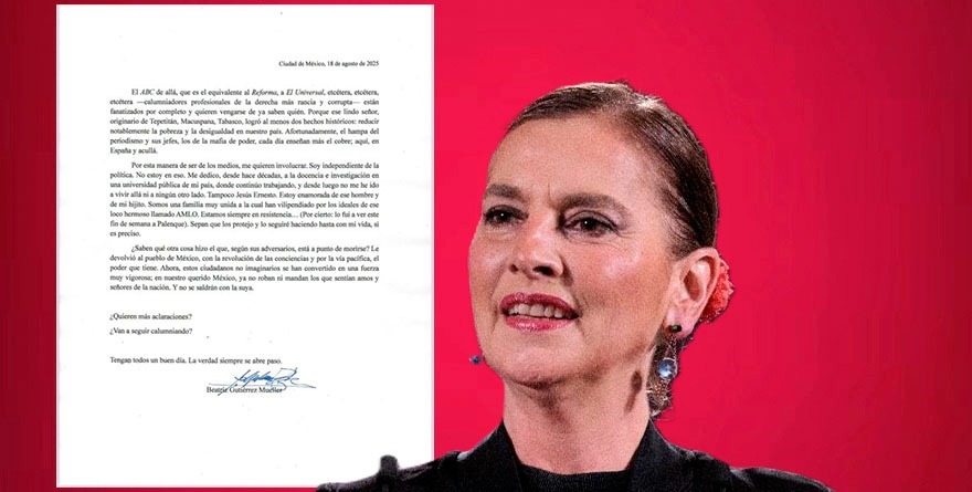 Ciudad de México 19 agosto 2025.- Ante la versión de que se mudó a Madrid, como difundió el diario español ABC, Beatriz Gutiérrez Müller respondió ayer: «no me he ido a vivir allá». Y advirtió que estudia demandar a los medios informativos que difundieron la versión de su mudanza.