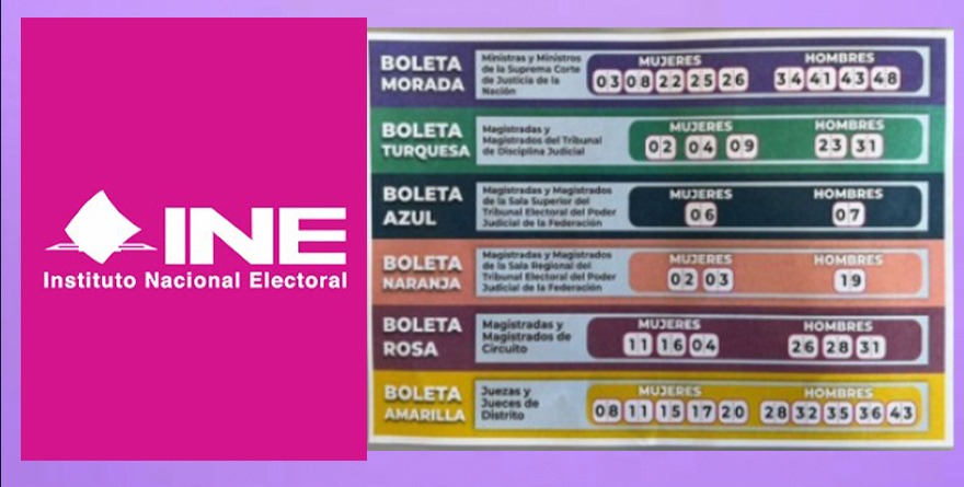 Para los cargos nacionales aparecen los mismos nombres que en otros acordeones que circulan. Para ministros de la Suprema Corte están Lenia Batres, Jazmín Esquivel, Loretta Ortiz, Sara Irene Herrerías Guerra y Estela Ríos.