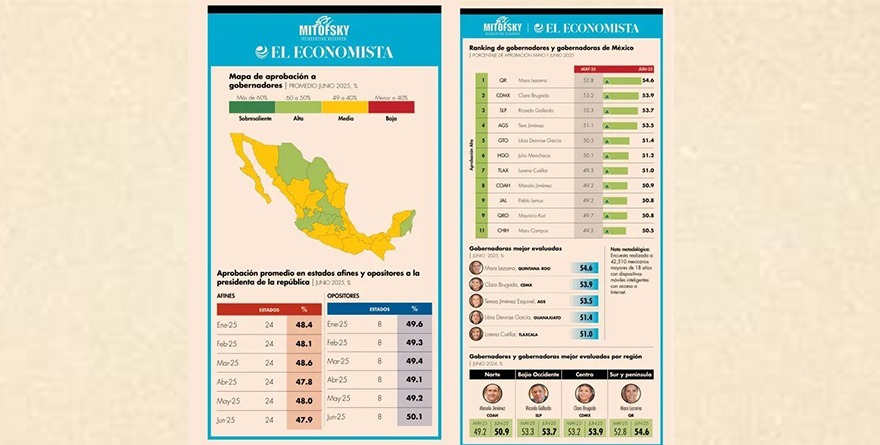 · El ranking Mitofsky de junio lo ubica en el tercer lugar nacional y, por segundo mes consecutivo, en el primer lugar en la región bajío.