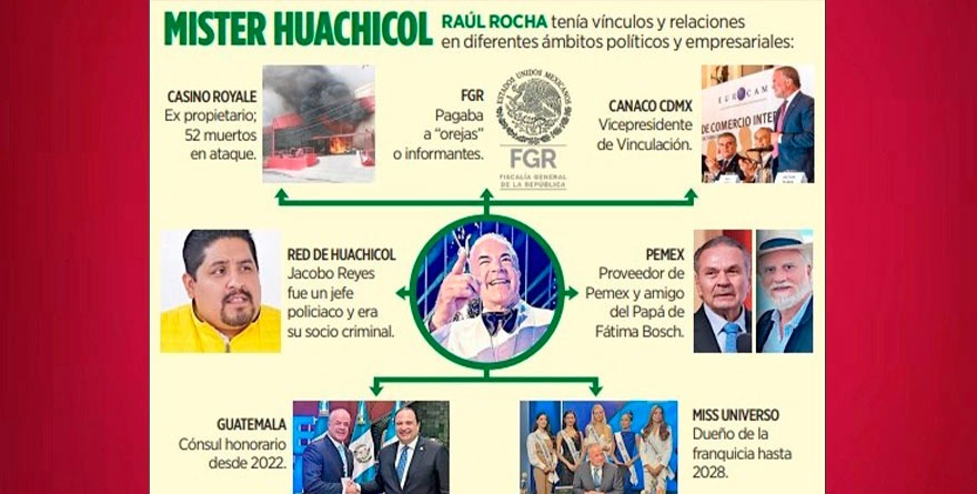 Ciudad de México 26 noviembre 2025.- Raúl Rocha Cantú, el dueño del concurso de Miss Universo, acusado por la FGR de narco, tráfico de armas y venta de huachicol, sobornó a una alta funcionaria de esa dependencia para obtener información sobre la indagatoria en su contra.
